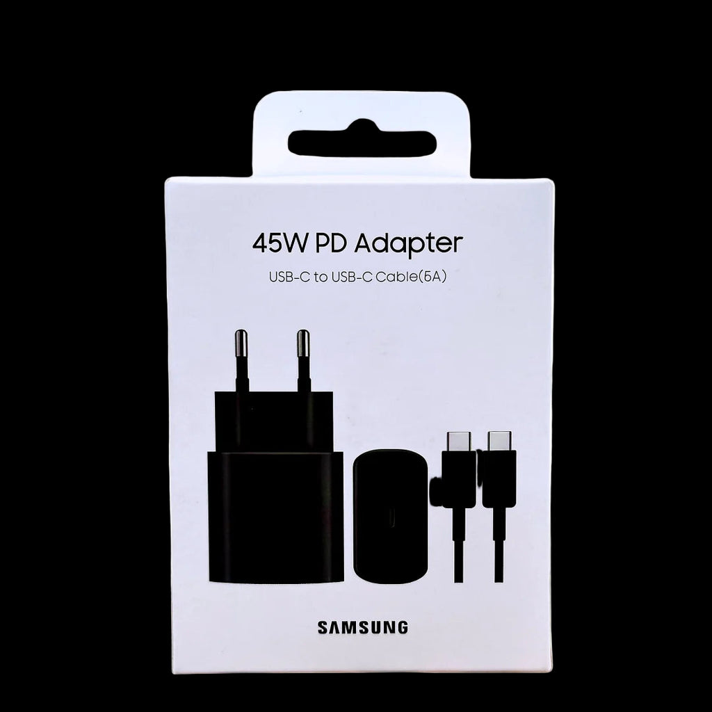 Carregador original Samsung de alto desempenho a 45W com carga rápida, inteligente e adaptativa.